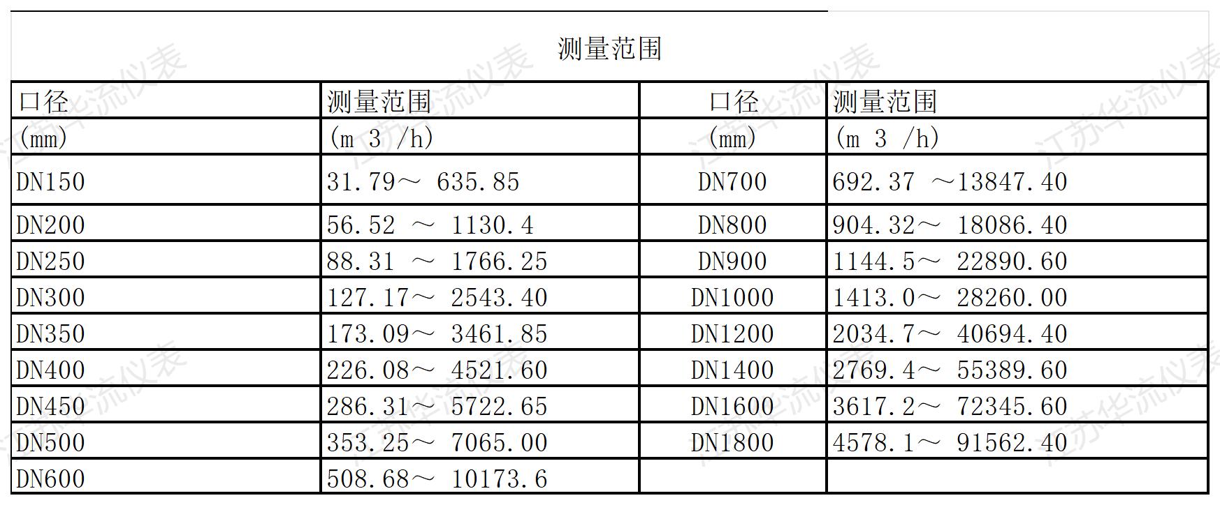 口径流量对照表