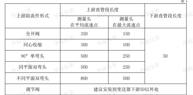 段。直管段要求见表1。